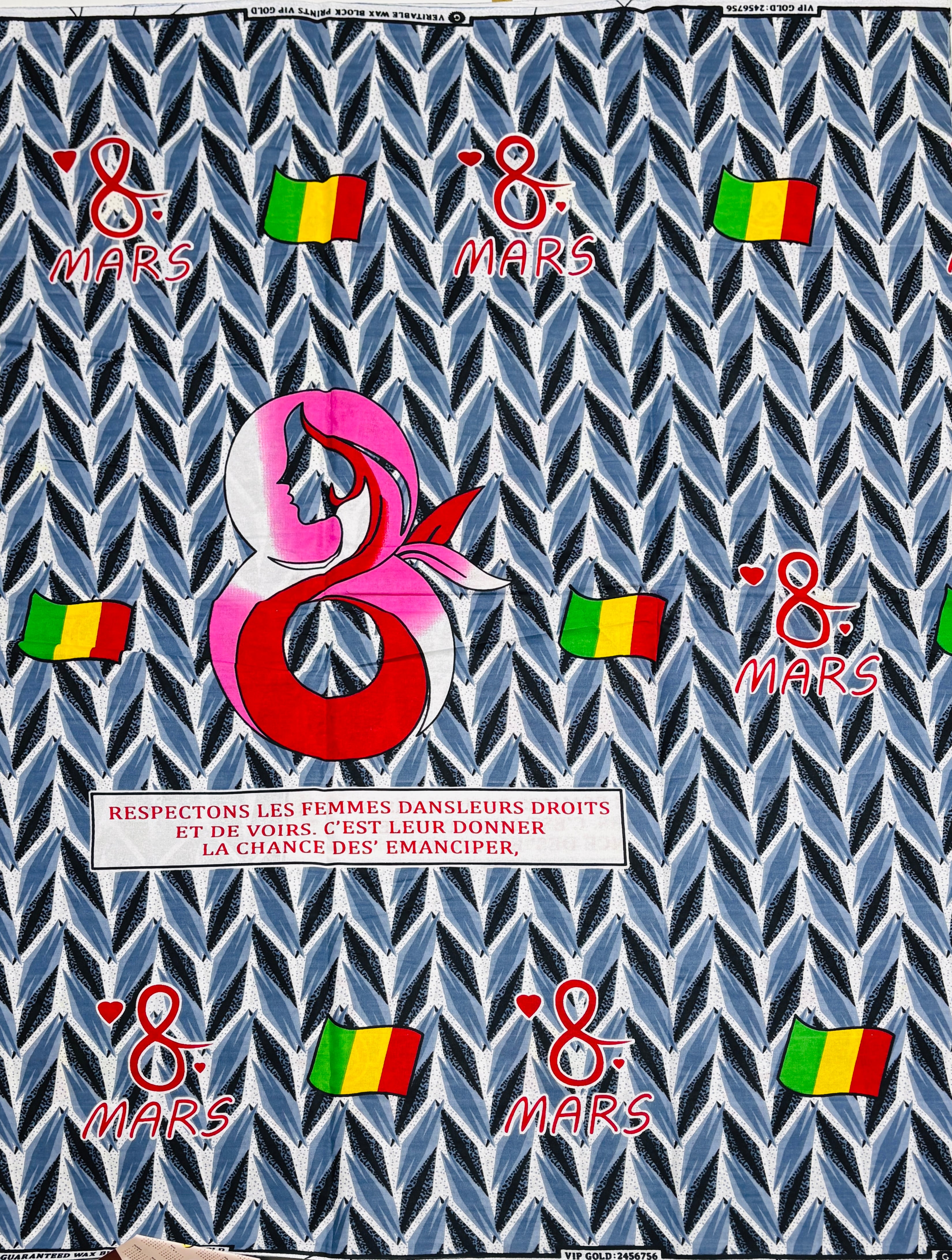 ・アフリカから仕入れた布は、6ヤード、12ヤード単位で売られている事がほとんどで、束が崩れないために小さめのシールで両端をまとめています。